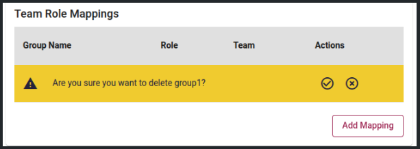 The Delete Team Role Mapping action removes the mapping from the Portal. This change will take effect next time mapped users login through the IdP.