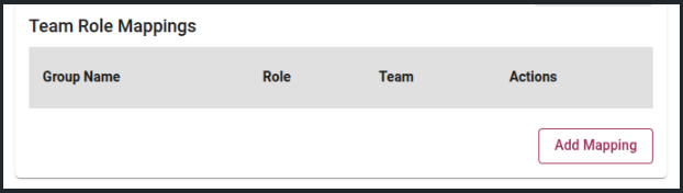 - After saving, the Add Mapping button is enabled in the team-role mappings table.